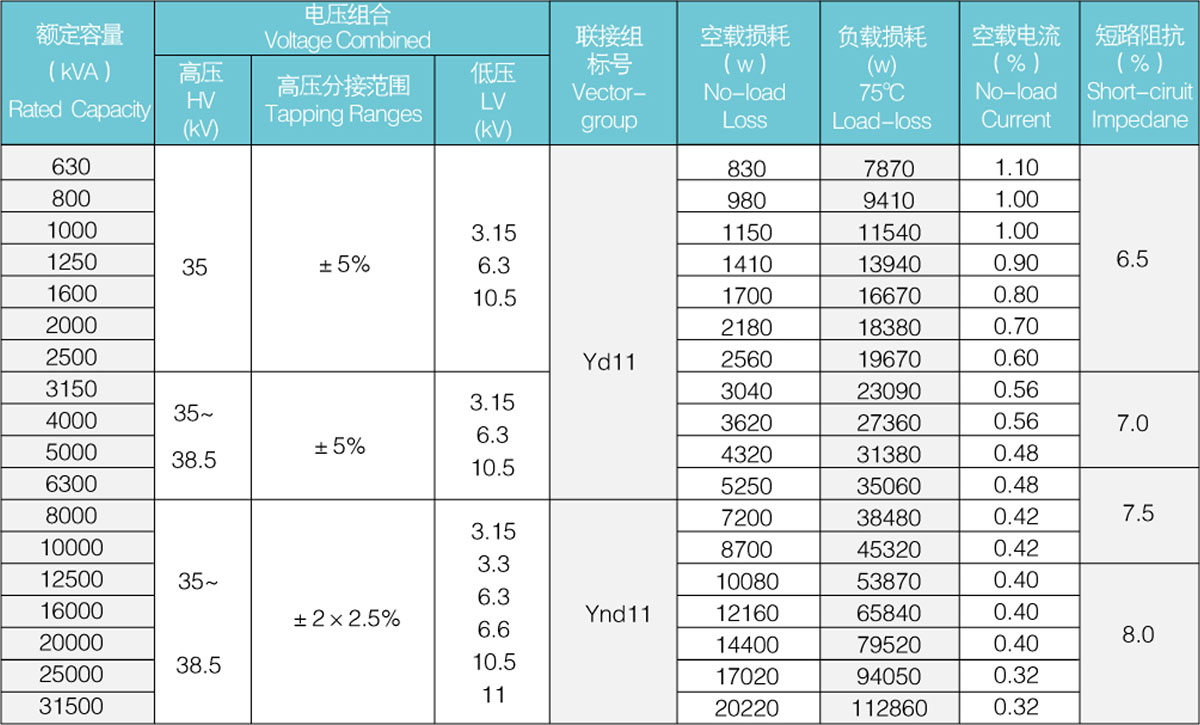該產(chǎn)品執(zhí)行國家標準GB1094-1996《電力變壓器》和GB/T6451-2008 《三相油浸式電力變壓器技術(shù)參數(shù)和要求》。S11系列變壓器是新系列低損耗銅繞組產(chǎn)品,該產(chǎn)品采用優(yōu)良材料,在線圈器身和絕緣方面,運用新工藝、新材料、從而使空載、負載損耗明顯降低,性能和結(jié)構(gòu)可靠和優(yōu)良。